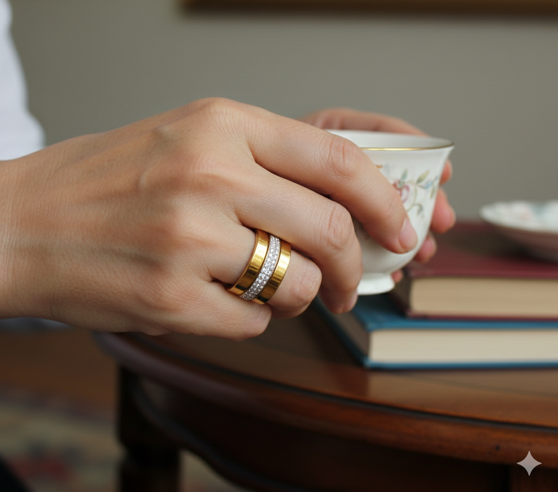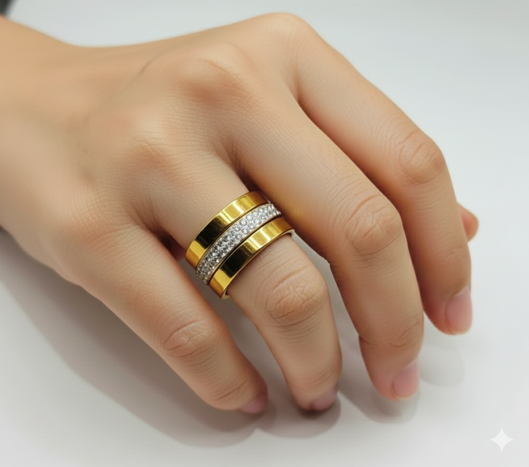 Description : This classic ring features a simple, yet elegant, gold band.Details ..* Material: Stainless Steel 316L * Color: Gold Tone * Size : 17 / 18 /19 The ring is crafted from high-quality stainless steel, ensuring durability and long-lasting beauty. The gold tone finish complements a variety of skin tones and adds a touch of elegance.
